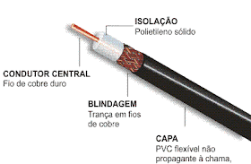 O cabo coaxial é constituido por um fio de cobre condutor revestido por um material isolante e rodeado duma blindagem, o que permite transmissões de frequências muito elevadas e isto para longas distâncias.