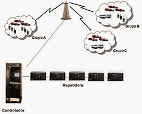 Nas redes troncalizadas as condições de comunicação em que o usuário está sujeito são as seguintes: Wide Area Trunking. É a comunicação entre os sítios através do Master Site.